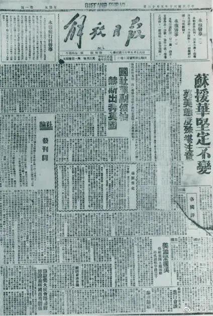 圖為1941年5月16日在延安創(chuàng)刊的中共中央機關報《解放日報》。
