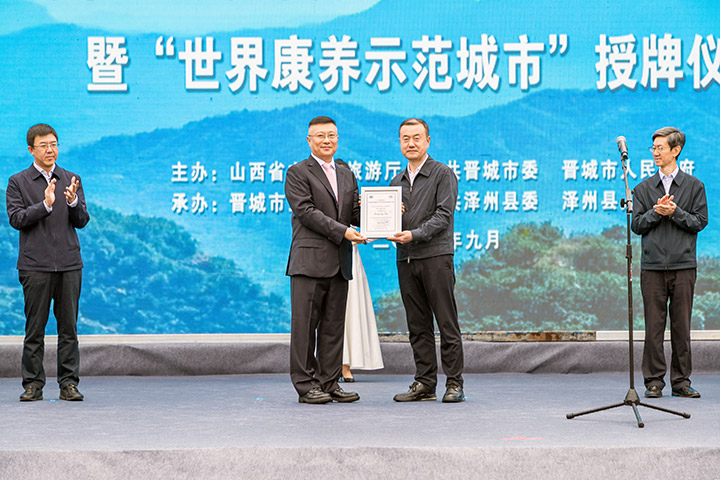 9月26日上午,2021年山西省第七次旅游發(fā)展大會晉城分會場系列活動啟動儀式暨“世界康養(yǎng)示范城市”授牌儀式在大陽古鎮(zhèn)舉行。